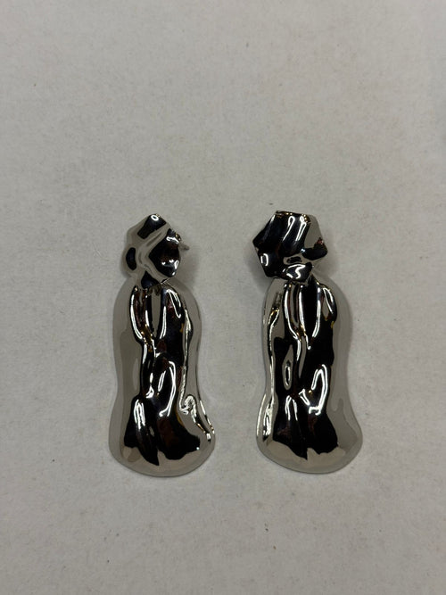 Modern Silver Molten Liquid Drop Earrings - Geometric Statement Earrings for Women